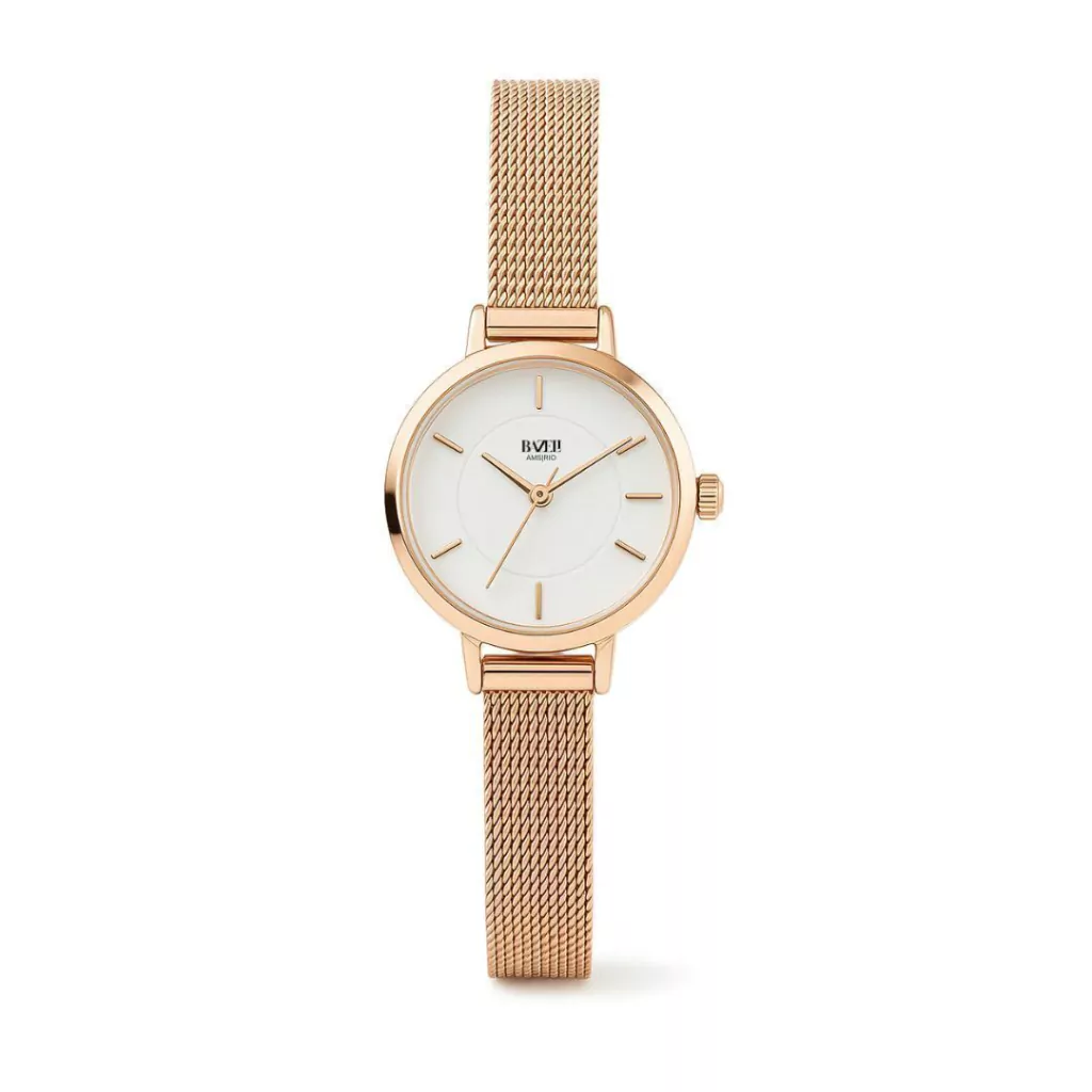 O Relógio Feminino Tulipa Ouro Rosé equilibra minimalismo e elegância refinada. Criado em Amsterdã para mulheres que valorizam presença sutil, ele une uma pulseira mesh metálica em ouro rosé a um mostrador branco fosco — um contraste suave que combina com qualquer ocasião.