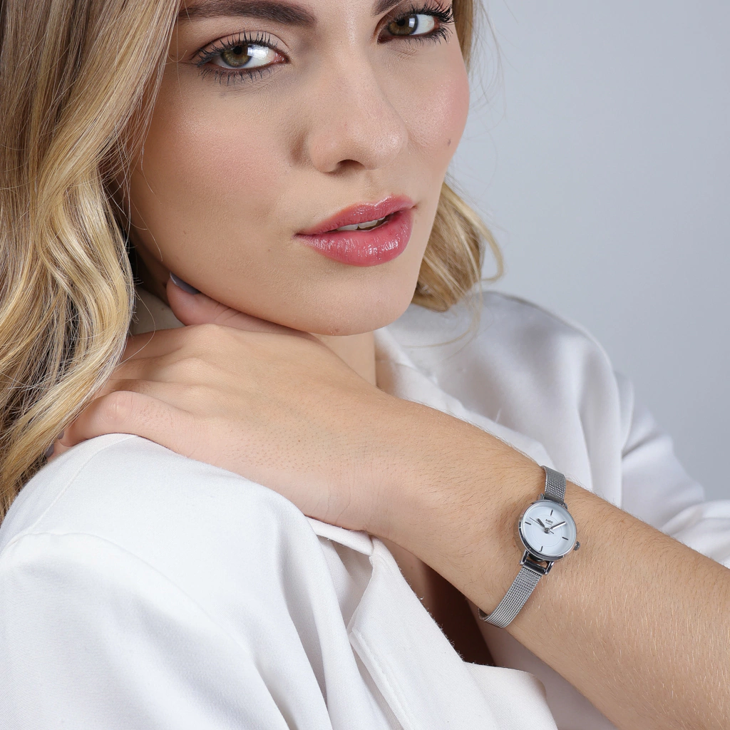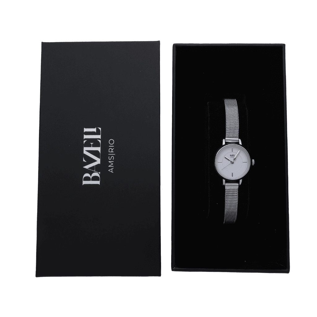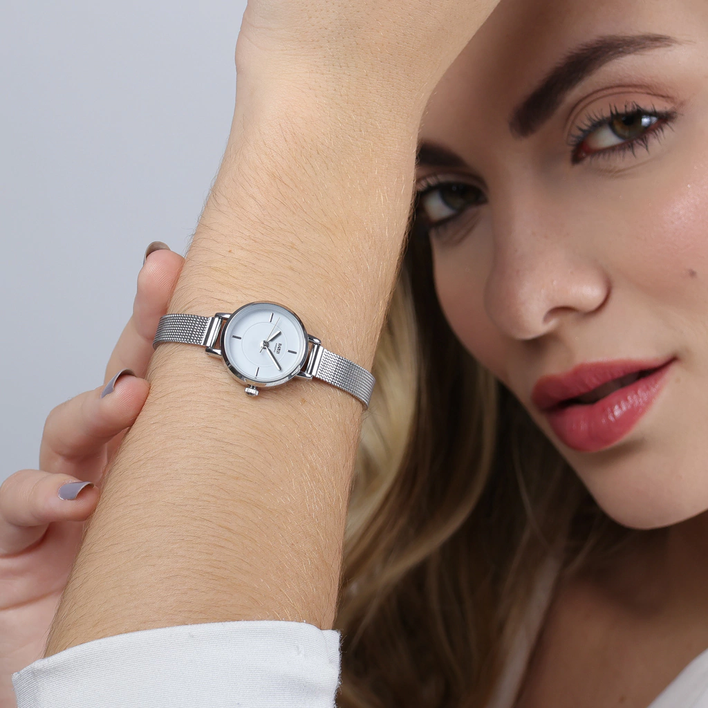 O Relógio Feminino Tulipa Prateado é a expressão perfeita do equilíbrio entre minimalismo e sofisticação. Criado em Amsterdã e pensado para a mulher brasileira, ele traz uma pulseira mesh metálica em silver e um fundo branco clean, refletindo um design refinado e atemporal.