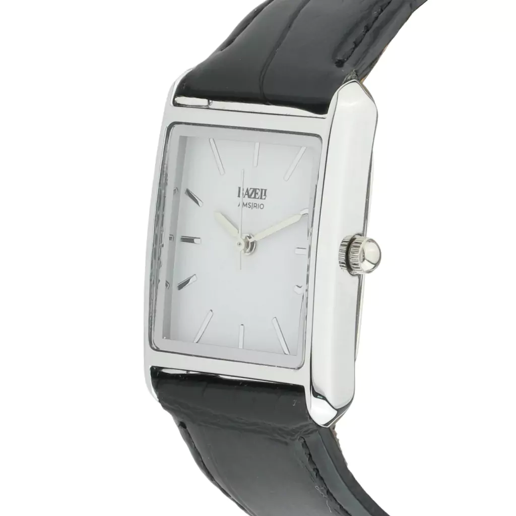 Inspirado no mestre holandês Rembrandt, este relógio traduz elegância atemporal em uma caixa retangular de 22 × 32 mm em acabamento Silver que brilha com sofisticação discreta. O mostrador branco fosco com marcadores prateados reflete pureza e estilo, enquanto a pulseira de couro preto com padrão crocodilo (intercambiável) garante conforto absoluto.