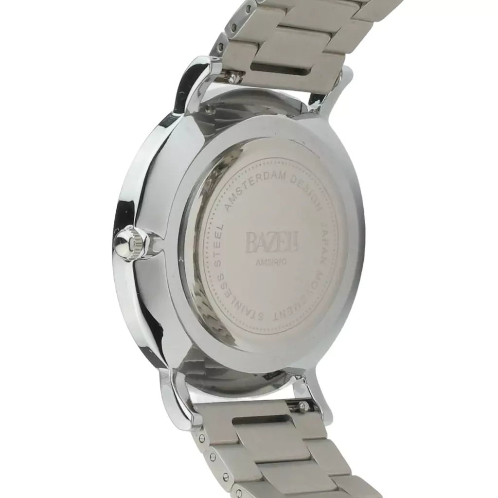O Relógio Masculino Bossa Nova Prata representa a evolução da nossa coleção mais icônica. Criado em Amsterdã, ele combina design holandês com uma estética urbana refinada. A caixa de 40 mm em acabamento silver transmite sofisticação contemporânea, enquanto o mostrador azul vintage adiciona um toque minimalista e limpo — evocando o tom profundo do crepúsculo carioca.