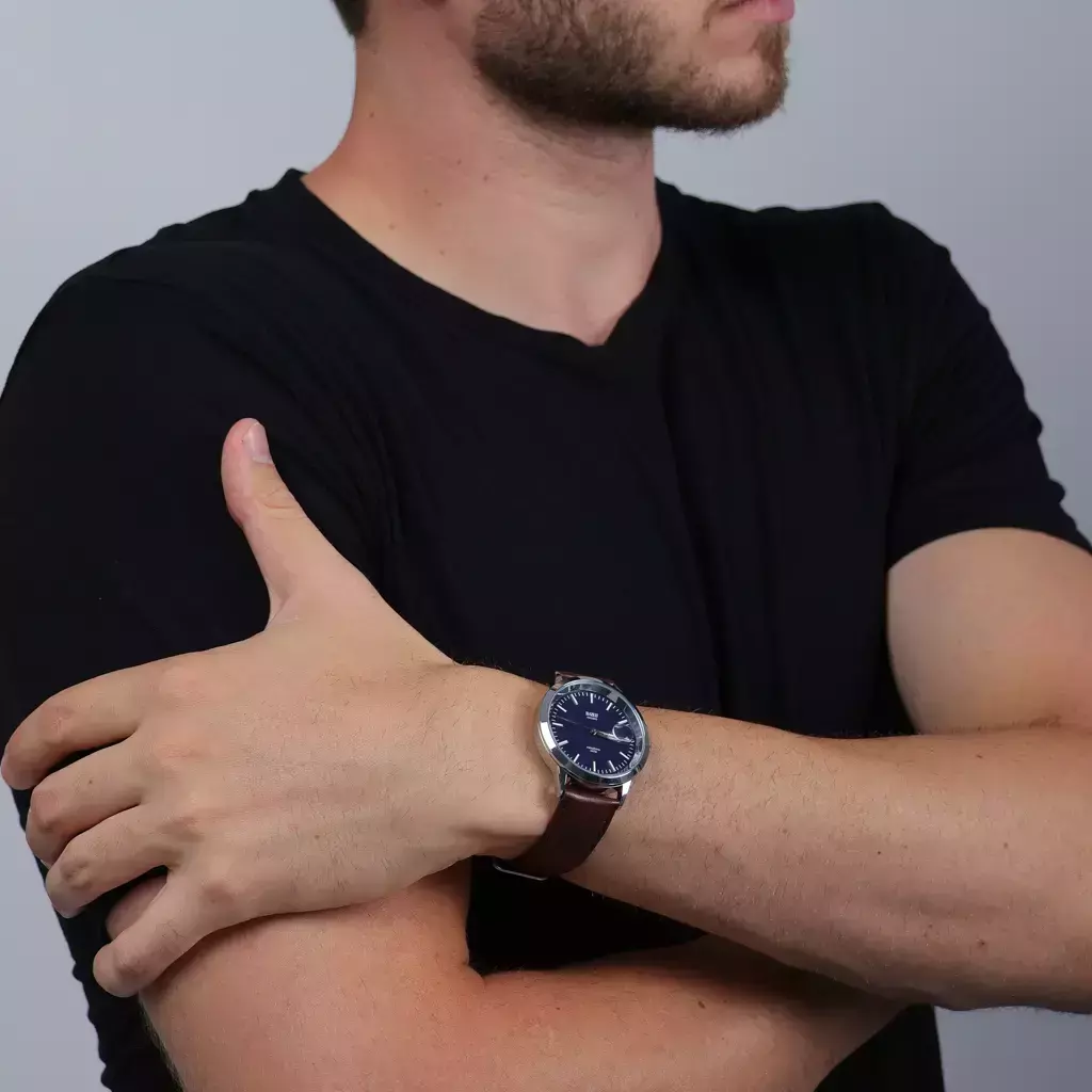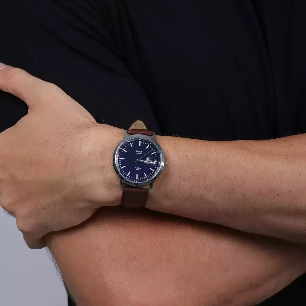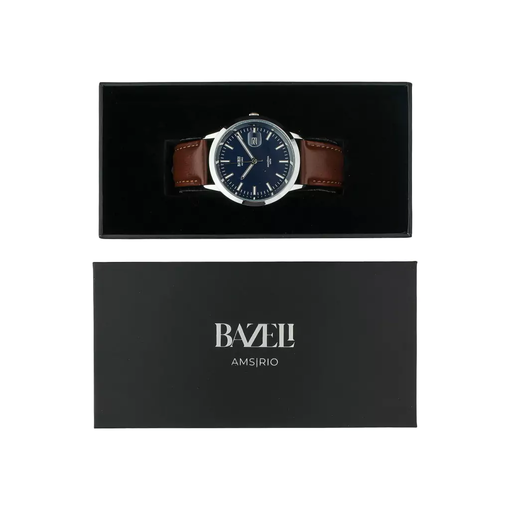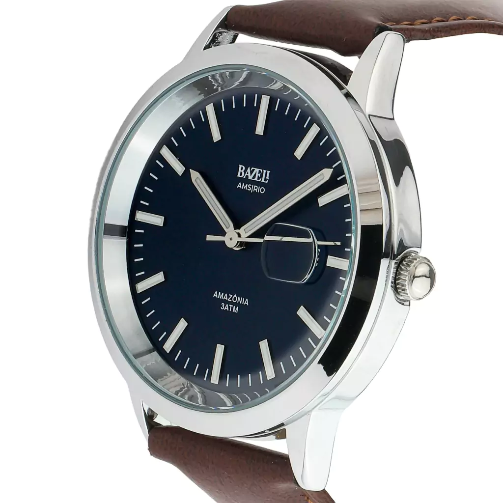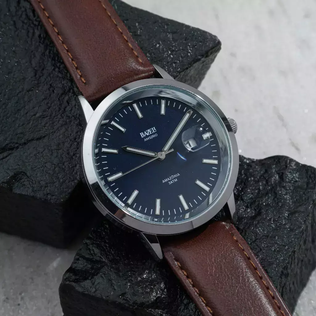 O Relógio Masculino Amazônia da Bazeli combina o refinamento do design europeu com a autenticidade brasileira. Criado em Amsterdã, ele traz uma pulseira de couro marrom sintético sofisticada e um mostrador azul profundo — inspirado na grandiosidade da Amazônia e refletindo a calmaria do Rio ao entardecer — enquanto o calendário de data oferece praticidade e estilo para o seu dia a dia.