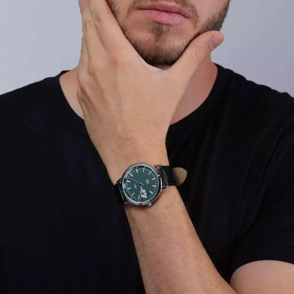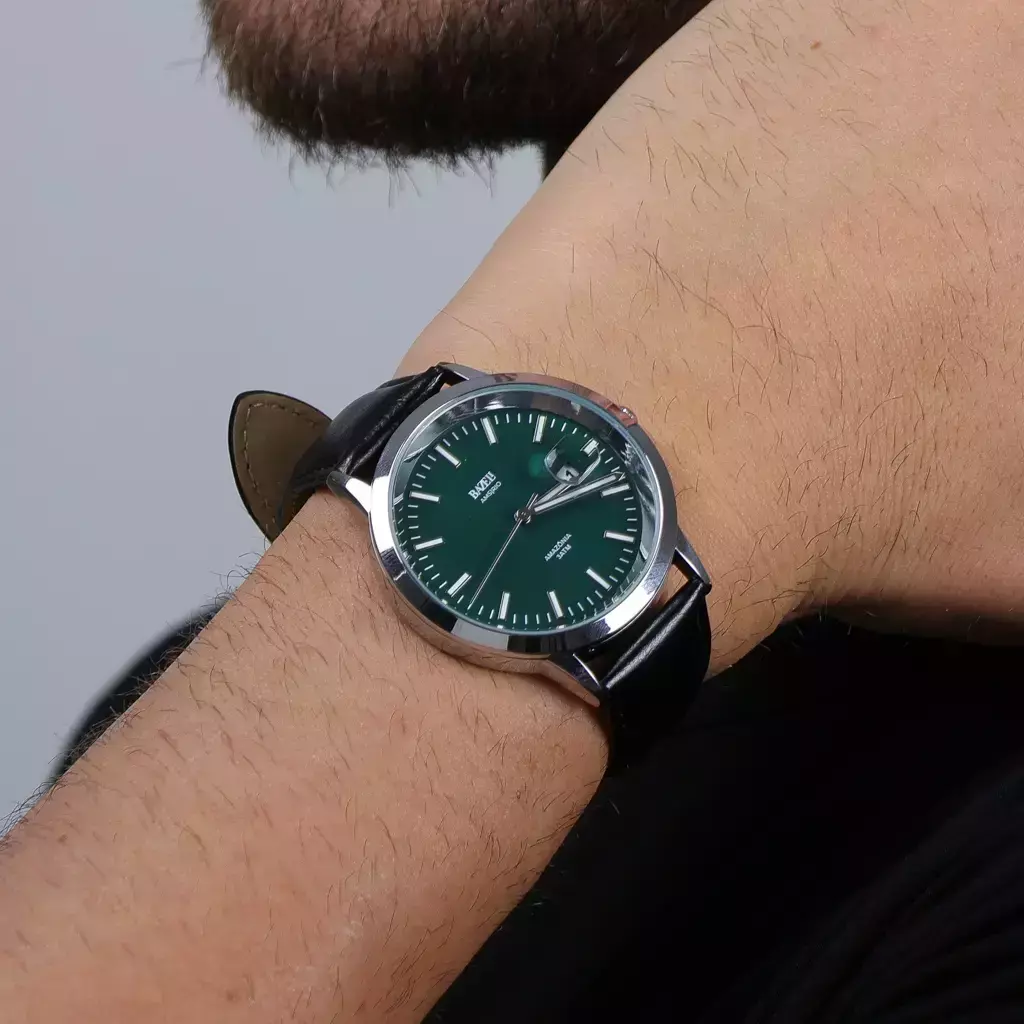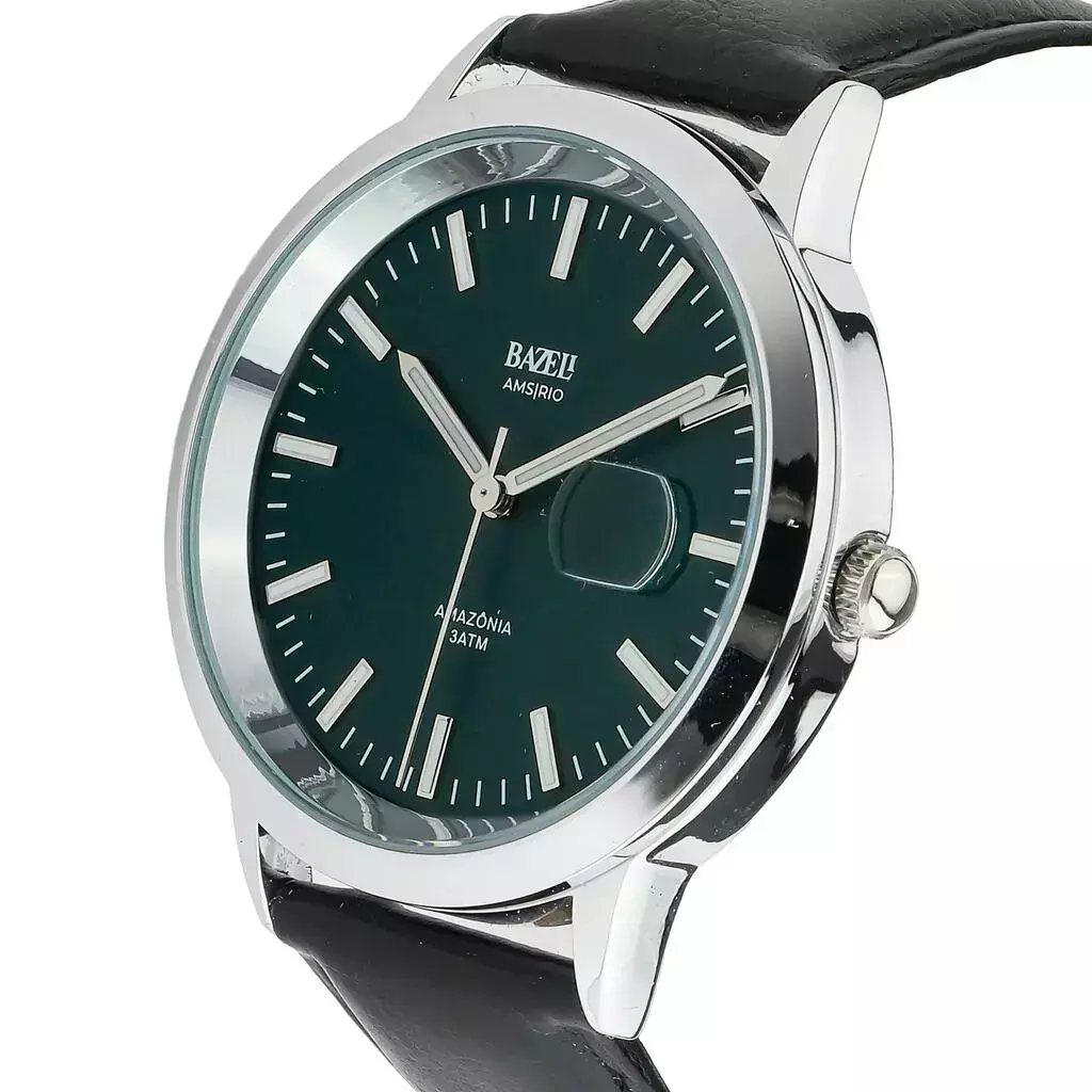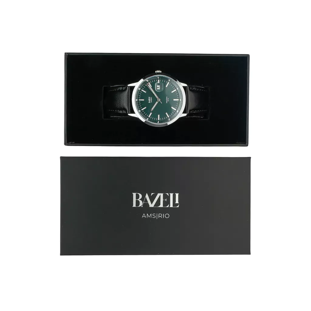 O Relógio Masculino Amazônia combina o refinamento do design holandês com a autenticidade brasileira. Criado em Amsterdã, traz uma pulseira de couro preto sofisticada e um mostrador verde profundo inspirado na grandiosidade da Amazônia. O calendário de data garante praticidade, enquanto a caixa prateada de 40 mm confere elegância contemporânea.